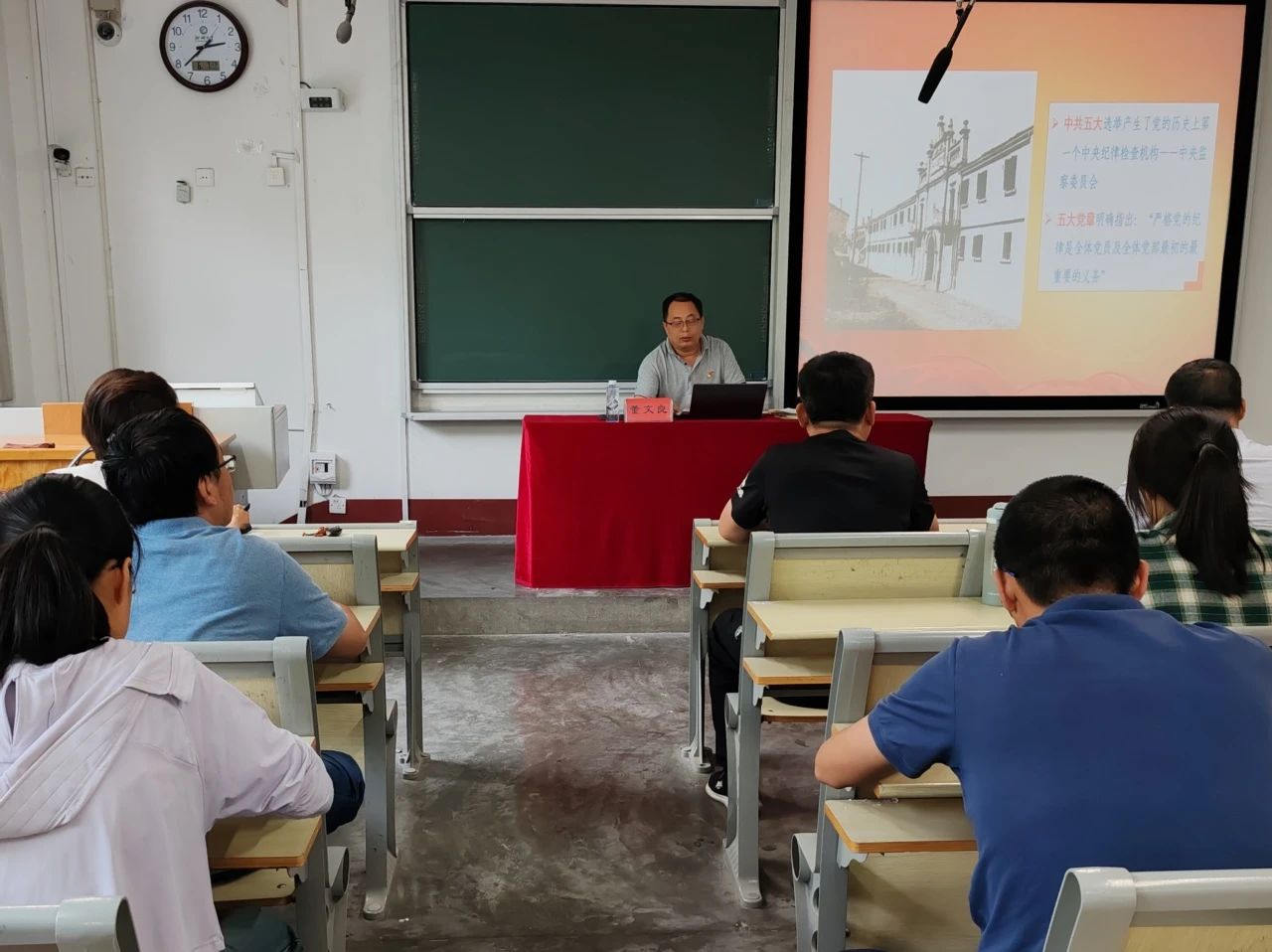 为扎实开展党纪学习教育,全面贯彻“全面从严治党永远在路上”“党的自我革命永远在路上”的精神,增强党员纪律意识和规矩意识,6月6日,亚色视频 于亚色视频 东校区2#201举办党纪学习教育专题党课,此次党课特邀校党委组织部副部长董文良同志为亚色视频 党员授课。