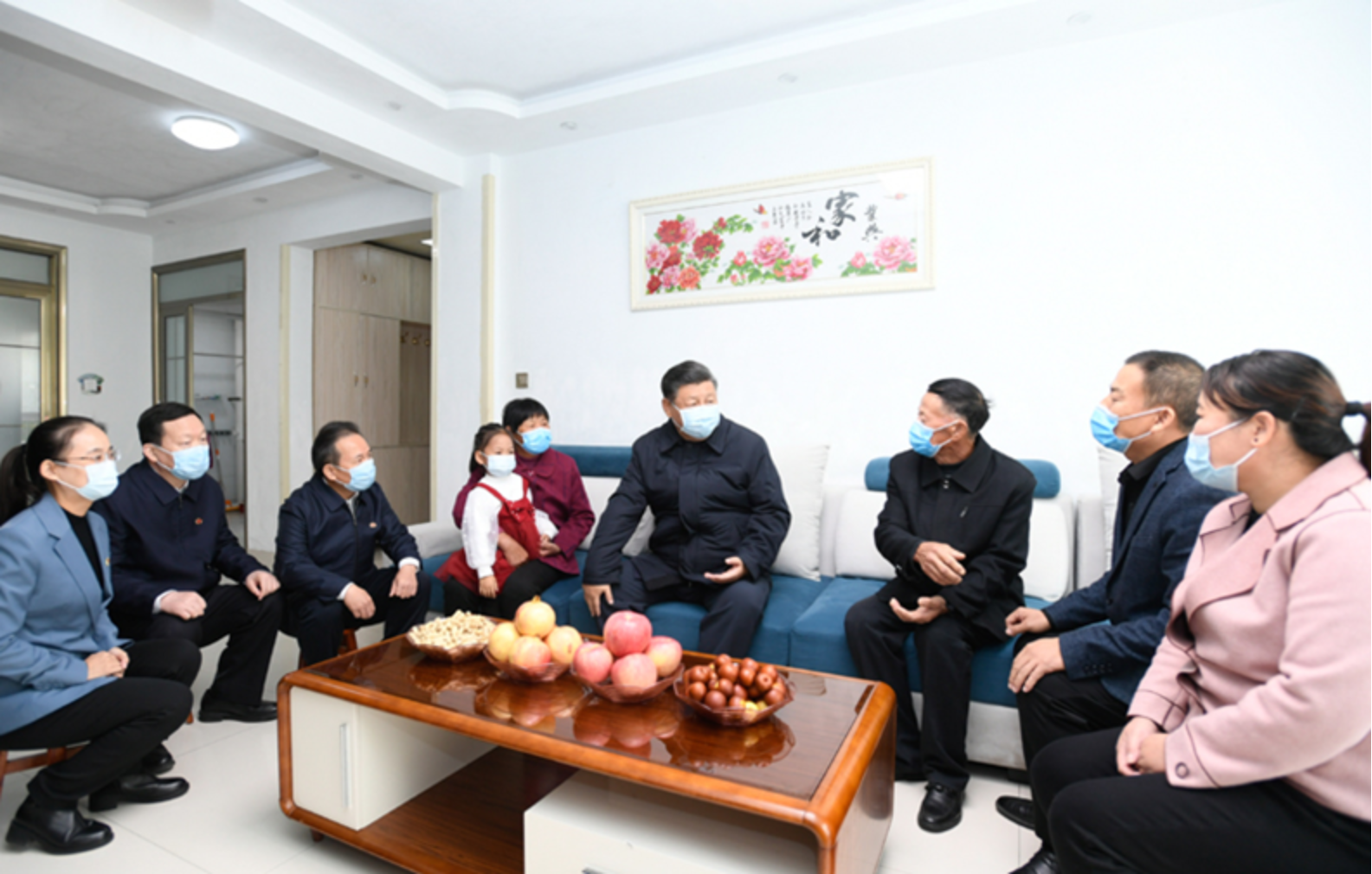 习近平21日上午在东营市垦利区董集镇杨庙社区居民许建峰家,同一家三代人围坐交谈