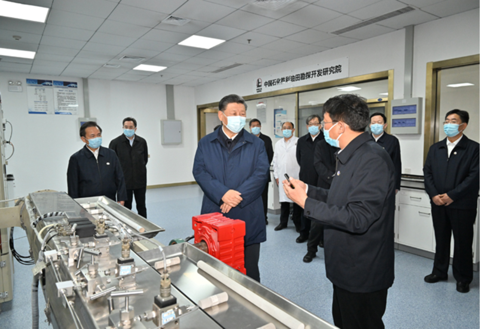 习近平21日下午在东营市胜利油田勘探开发研究院页岩油实验室考察自主创新情况