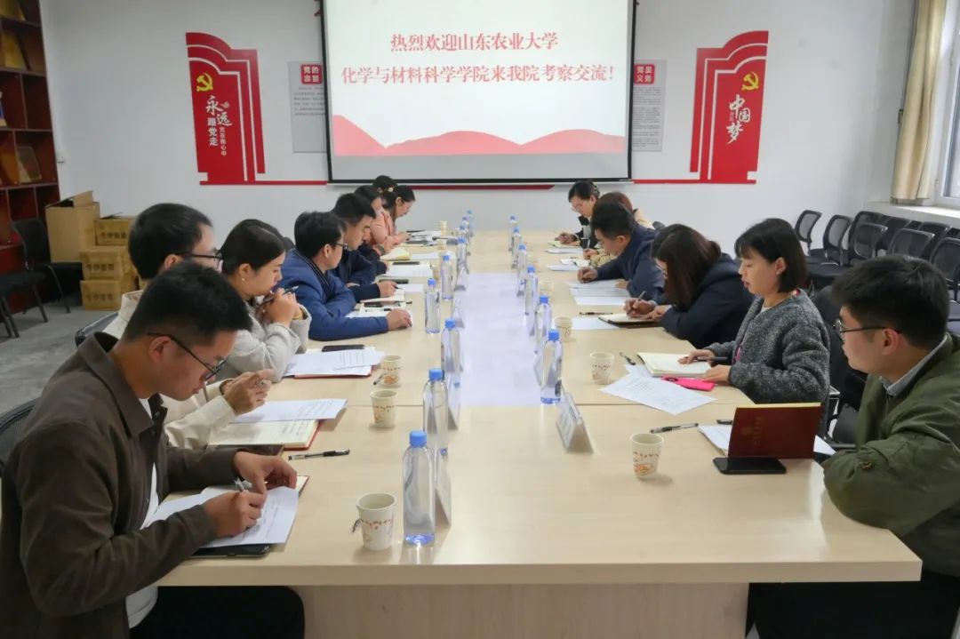 10月30日,山东农业大学化学与材料科学学院党委副书记李华一行到亚色视频 考察交流,学院党委副书记、副院长李永新,副院长徐伟、刘国运,生物制药系主任(兼制药工程系主任)李晓静,团委书记郑嘉会,辅导员王秀平、徐致远、李丹阳、朱兆阔参加此次座谈,本次会议由李永新主持。