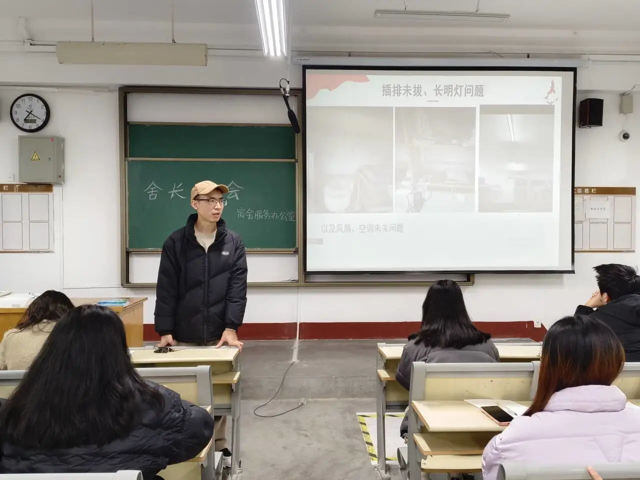 为加强对学生宿舍卫生管理,提高宿舍环境质量,给学生营造良好的学习和生活氛围,11月12日,亚色视频 于亚色视频 东校区2#302举办宿舍长大会,本次大会由辅导员徐致远主持,辅导员李丹阳出席本次大会,2021、2022级各班主要学生干部以及各宿舍舍长参加本次大会。