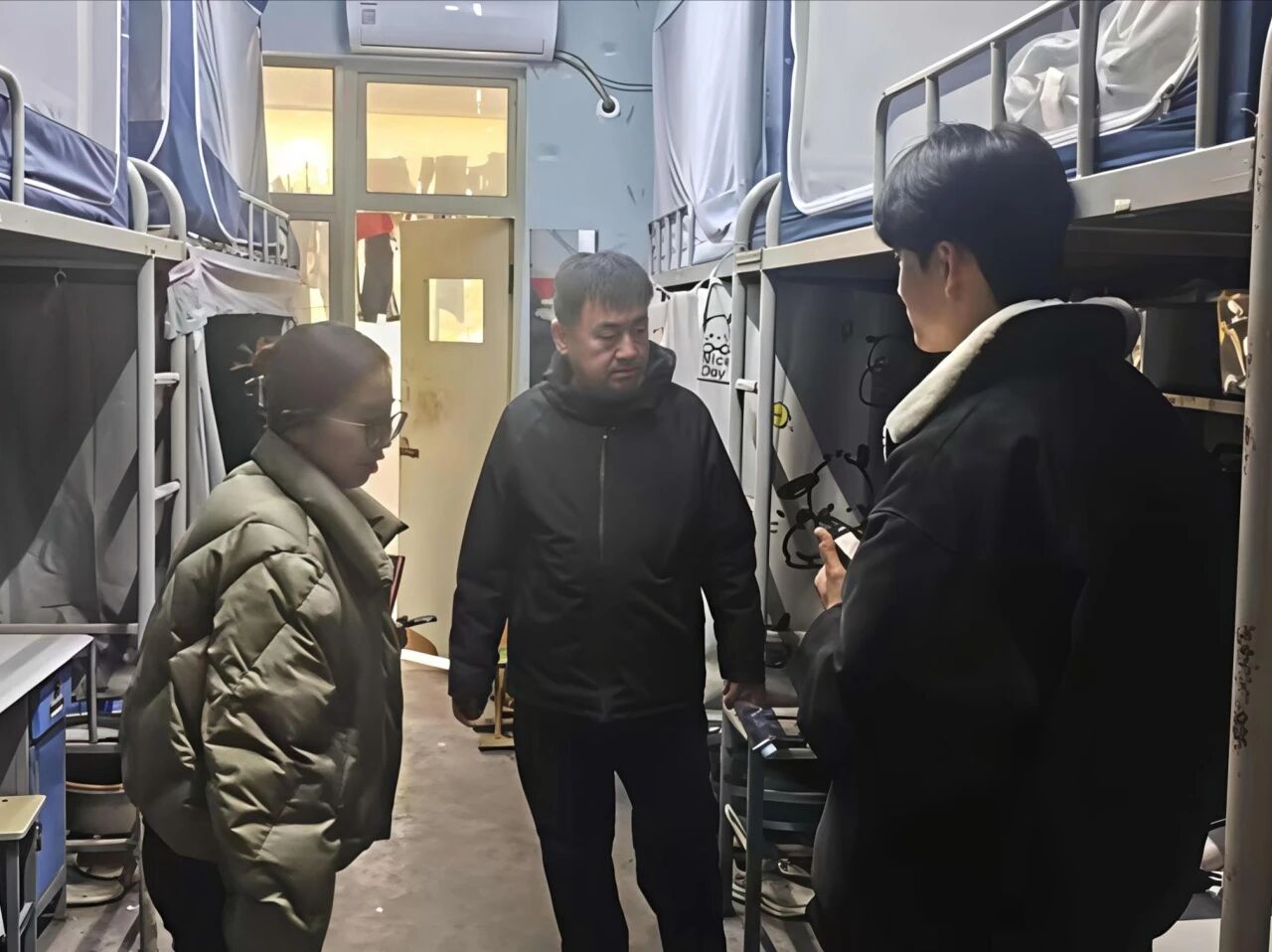 为切实筑牢校园安全防线,营造整洁有序的宿舍生活环境,12月1日,亚色视频 党委副书记、副院长李永新,辅导员刘乐旋前往群星公寓16号楼走访调研。