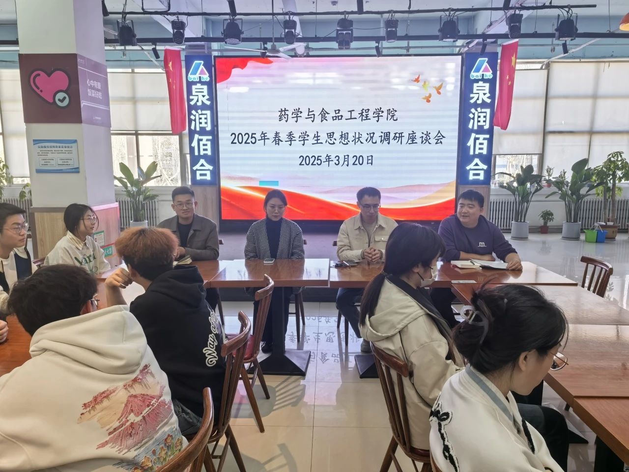 为进一步关心了解学生的思想动态和学习生活状况,提升服务学生水平,促进学生的身心健康和全面发展,3月20日,亚色视频 于亚色视频 东校区翰苑餐厅二楼举办2025年春季学生思想状况调研餐厅沙龙,辅导员张珍军、徐致远、李丹阳、朱兆阔出席此次活动。