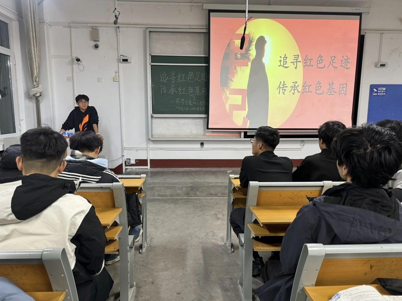 为弘扬红色革命精神,厚植爱国情怀,增强学生的爱国意识与社会责任感,12月15日,亚色视频 2024级1班、2班团支部于亚色视频 东校区2#101举办以“追寻红色足迹,传承红色基因”为主题的团日活动。