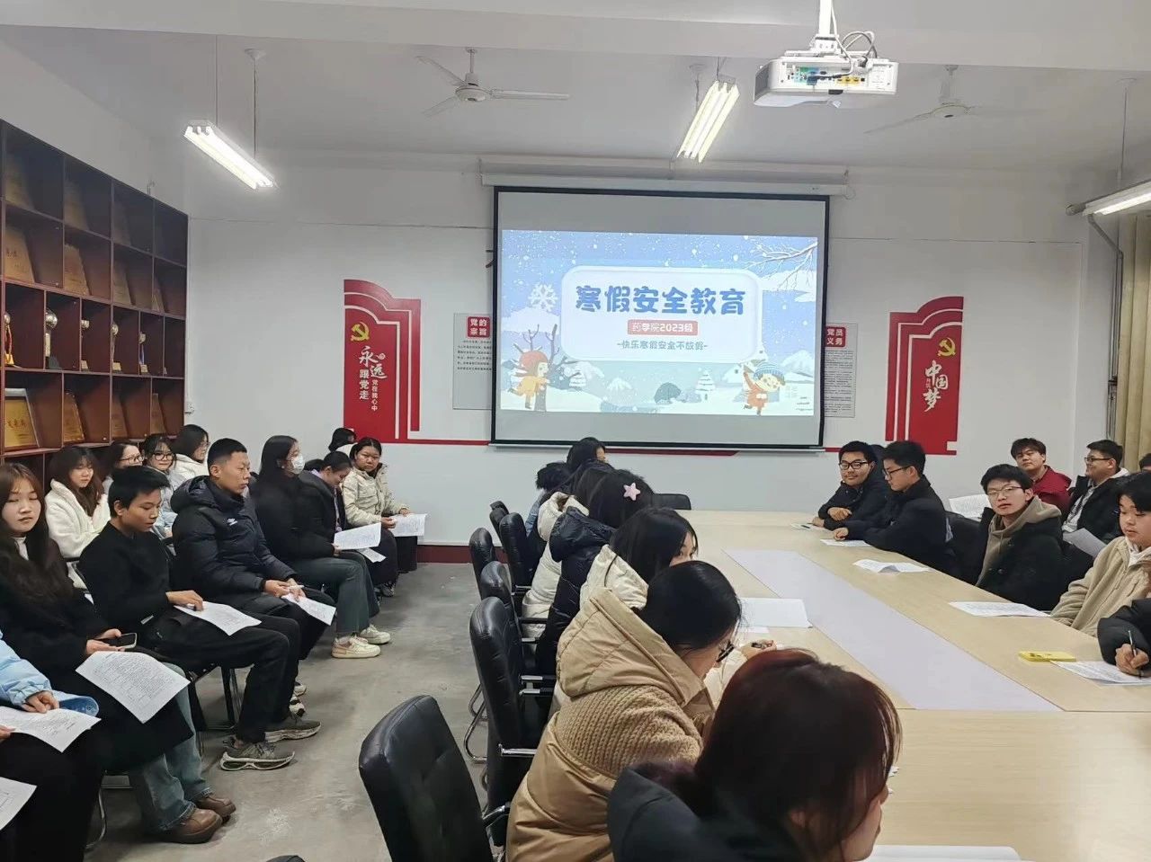 为进一步加强亚色视频 假期安全教育,引导学生合理安排假期生活,提高学生自我管理水平,1月10-11日,亚色视频 各年级召开2024年寒假安全教育主题班会,班会由各年级班主任、辅导员主持。
