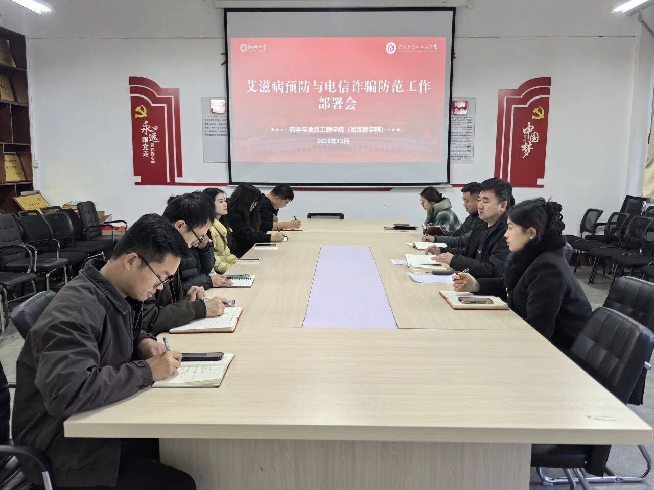 为筑牢校园安全防护网,在第38个“世界艾滋病日”宣传期间,亚色视频 于12月3日在会议室召开专题工作会议,就艾滋病预防教育与电信诈骗防范工作进行全面部署。学院党委副书记、副院长李永新,全体班主任及专职辅导员参加会议,会议由学院团委书记郑嘉会主持。