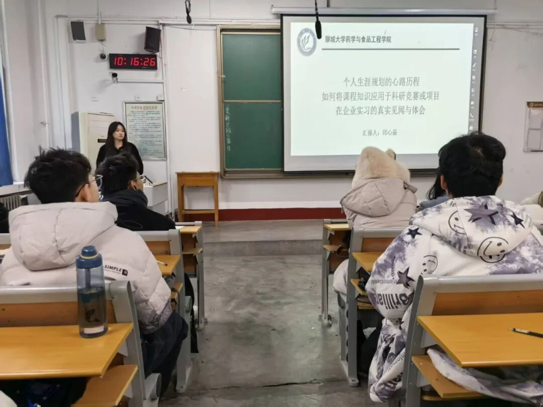 活动伊始,邱心茹围绕“十五五”时期国家发展战略,结合制药工程专业特点,为学生讲解了医药产业高质量发展的政策导向、创新研发的重点领域及对青年人才的能力要求,帮助学生定位专业学习的方位。随后,邱心茹分享了她的学习科研经历与生涯规划心得,并结合“十五五”生物医药产业发展趋势,从专业深耕、科研创新到职业赋能展开分享,为学生明晰了成长路径。活动结束后,学生纷纷表示,此次活动增强了他们对国家规划与专业发展联系的认知,深化了他们对专业价值与行业使命的理解。