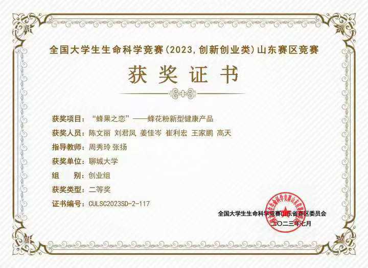 热烈祝贺亚色视频 王家鹏荣获“山东省大学生生物化学技能与创新创业大赛(2024,创新创业类)”二等奖
