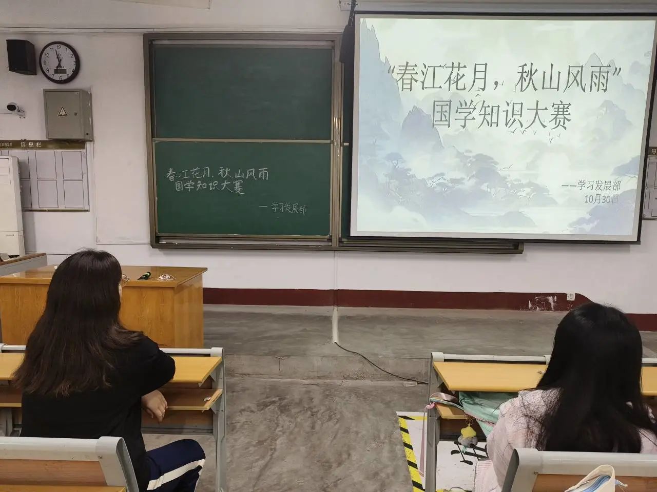 为了加强对学生的人文精神教育,增强学生的文化意识,促进国学知识的传承与发展,10月30日,亚色视频 于亚色视频 东校区2#307举办“春江花月,秋山风雨”国学知识大赛。此次活动采取以个人为单位的答题竞赛,参赛者依靠平时积累的唐诗宋词及相关文学常识进行答题,重点考察学生对唐诗宋词的熟悉程度与灵活运用能力。学生们在活动开始之前通过各种方法积极学习国学知识,掌握国学知识的内容。