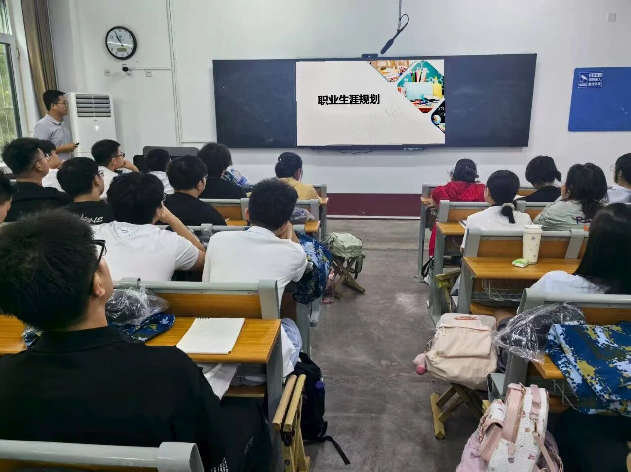 为帮助新生顺利适应大学生活,科学规划未来发展,明确未来职业方向,9月8日,亚色视频 于亚色视频 东校区2#105举办2025级新生职业生涯规划入学教育,本次活动由辅导员朱兆阔主持。