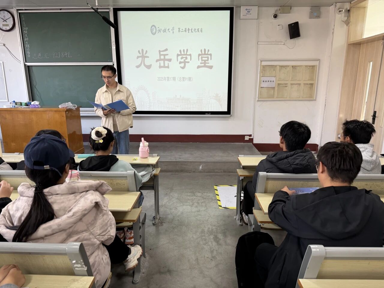 为助力学生了解学术领域的前沿动态,培育他们对未知领域的探究精神与创新意识,11月12日,亚色视频 于2# 201举办2025年第17期(总第91期)光岳学堂,特邀生物与医药专业硕士授权点秘书张凌雁担任主讲人,讲座由辅导员徐致远主持。