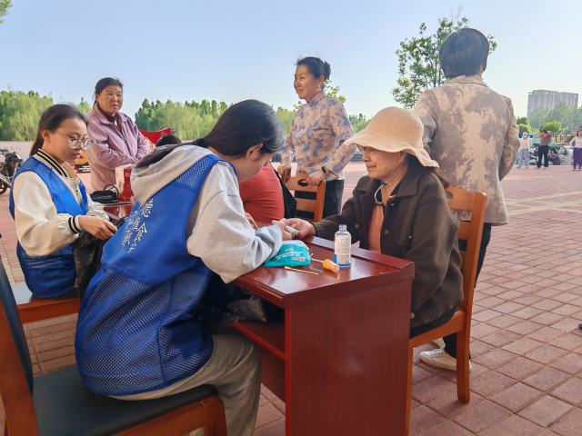 活动伊始,团队成员以通俗易懂的语言为居民们详细讲解高血糖、高血压等疾病的成因、症状以及日常预防措施。随后,团队成员为参加活动的老年人测量了血压、血糖。并根据测量结果给予健康建议和日常护理指导。同时,团队成员还积极向社区居民普及健康知识,强调定期体检和良好生活习惯的重要性,引导他们树立科学的健康观念,提高自我保健能力。现场氛围温馨融洽。