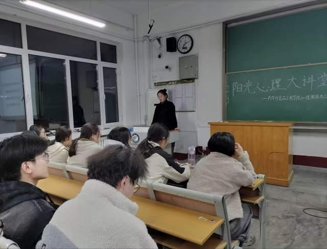 活动开始,主讲人借助科学数据和案例,讲解学习压力来源、表现及对身心健康的影响,引发众多同学共鸣。随后,主讲人详细介绍压力化解方法,涵盖调整心态、树立正确学习观,以及时间管理和科学学习策略等方面,让同学们学会了如何正确管理压力,不少同学都觉得受益匪浅。在分享环节中,同学们分享学习压力与困惑,主讲人耐心倾听,结合自身例子给出针对性建议与鼓励,让大家感受到理解与支持 。
