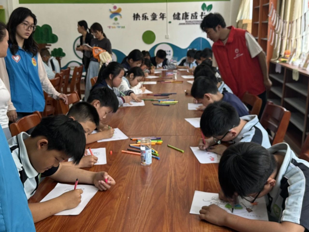 活动伊始,团队成员通过对香囊、五彩绳等端午传统道具的细致生动讲解,将端午节的起源与发展脉络以通俗易懂的语言娓娓道来,引领小学生仔细观察道具细节,并以奖励式互动提问激发孩子们积极思考、踊跃表达。随后,团队成员借助精心挑选的图片与视频,全方位展示了包粽子、赛龙舟、挂菖蒲等端午节传统习俗,深入阐释习俗背后蕴含的文化内涵,引导小学生感受传统文化的深厚底蕴与独特魅力。绘画环节,团队成员引导小学生用画笔勾勒心中的端午图景,小学生充分发挥想象力,创作出诸多饱含童趣与创意的端午主题画作,现场氛围热烈。活动结束后,老师们纷纷表示,相信学生会把传统节日里的文化精神转化为实际行动,在体验民俗中传承文明,让端午所蕴含的爱国情怀与文化根脉,转为成长路上的精神养分。