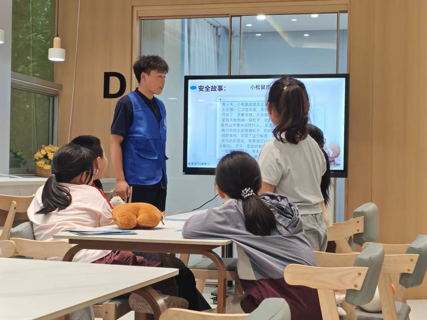 活动伊始,团队成员以生动有趣的安全故事将安全理念娓娓道来,并结合幼儿园教室场景图片,引导小朋友们在观察中识别潜在的安全隐患。针对幼儿认知特点,团队成员精心设计《危险标识卡童谣》,以朗朗上口的韵律和直观的动画演示,帮助小朋友们快速记忆“当心触电”、“注意安全”等常见警示标识的含义。实操教学环节,团队成员聚焦幼儿常见的擦伤场景,分步骤讲解并示范清洁伤口、消毒杀菌、包扎防护的完整流程。活动结束后,老师们纷纷表示,相信小朋友们能将活动中学到的安全知识转化为日常防护能力,在面对突发情况时保持冷静、正确应对,让“生命至上”的理念伴随成长。