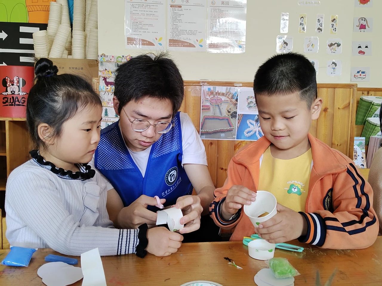 为丰富孩子们的课余生活,激发孩子们的想象力与创造力,培养孩子们的艺术细胞,4月10日,亚色视频 2024级7班团支部与578志愿者服务队于聊城市东昌府区华夏爱英万达幼儿园举办以“翁趣不倒-简趣不倒翁”为主题的社会实践活动。