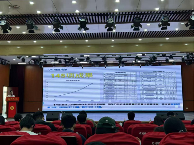 会议伊始,学院代表李福一结合研究生们普遍面临的科研视角单一、跨学科交流匮乏等问题,从项目的背景、体系、内容、创新点及成效等方面进行了全面而深入的介绍,让参会师生对“学术周航·智汇研途”项目有了更为清晰的认识。该项目以“讲座 + 工作坊”为核心驱动力,组织开展一系列跨学科学术交流活动。活动内容广泛覆盖药学、生物学、食品科学、农学等多个学科领域,为不同学科的研究生提供了交流思想、碰撞火花的平台。项目实施以来,学院研究生在科研方面取得了丰硕成果。截至目前,已成功获得10项专利,发表科研论文135篇,其中91篇被SCI收录。这些成果不仅为项目的持续推进提供了有力支撑,也为研究生的职业发展筑牢了根基。