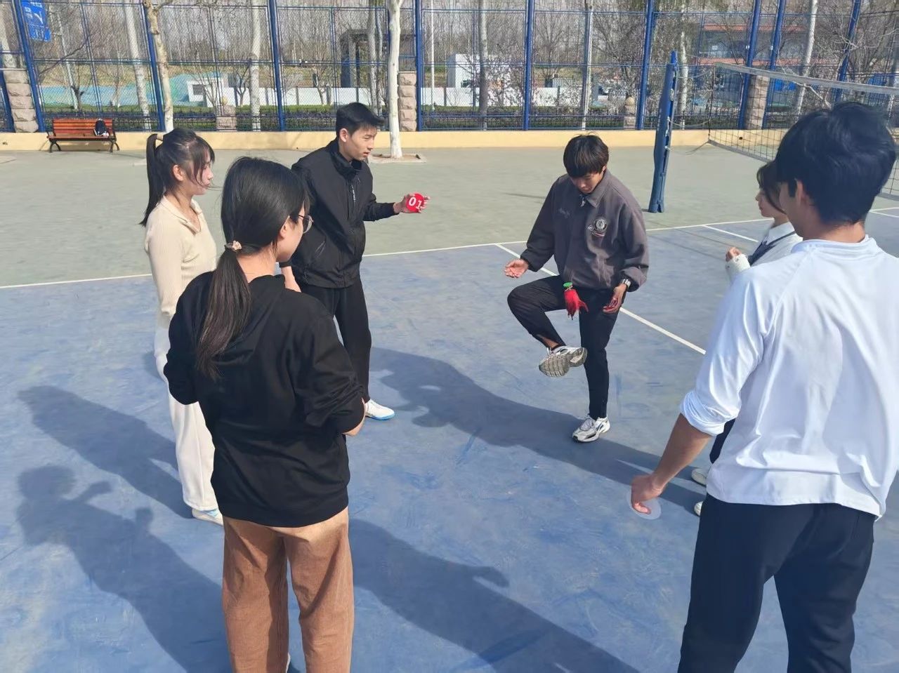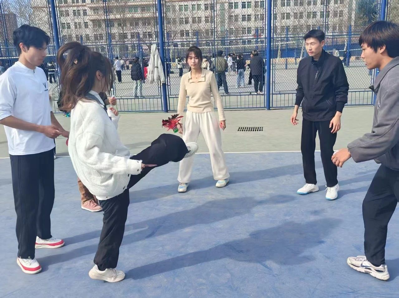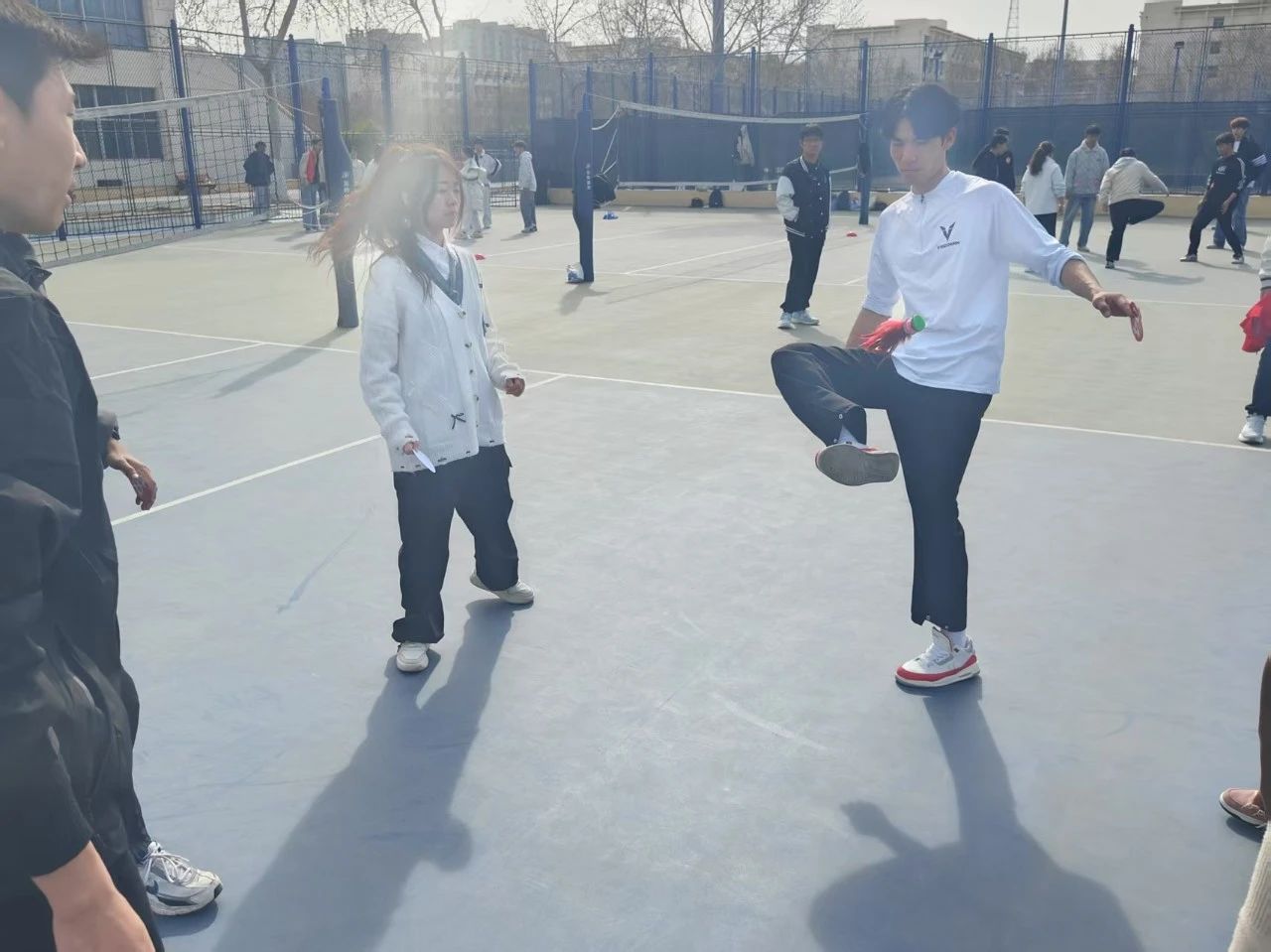 为丰富同学们的课余生活,提升身体素质,3月29日,亚色视频 于亚色视频 西校区南排球场参加“‘毽’步如飞,引‘翎’风尚”踢毽挑战赛。