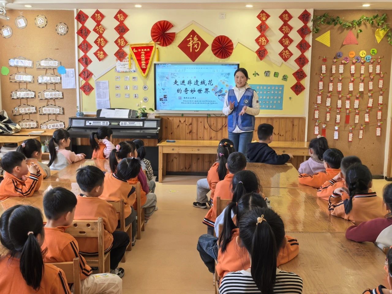 为深入贯彻习近平总书记关于非物质文化遗产保护的重要指示精神,培养小朋友们对传统文化的认知与热爱,3月20日,亚色视频 578志愿者服务队与2024级4班团支部于聊城市东昌府区万达幼儿园举办以“绒花轻舞,指尖生春”为主题的社会实践活动。