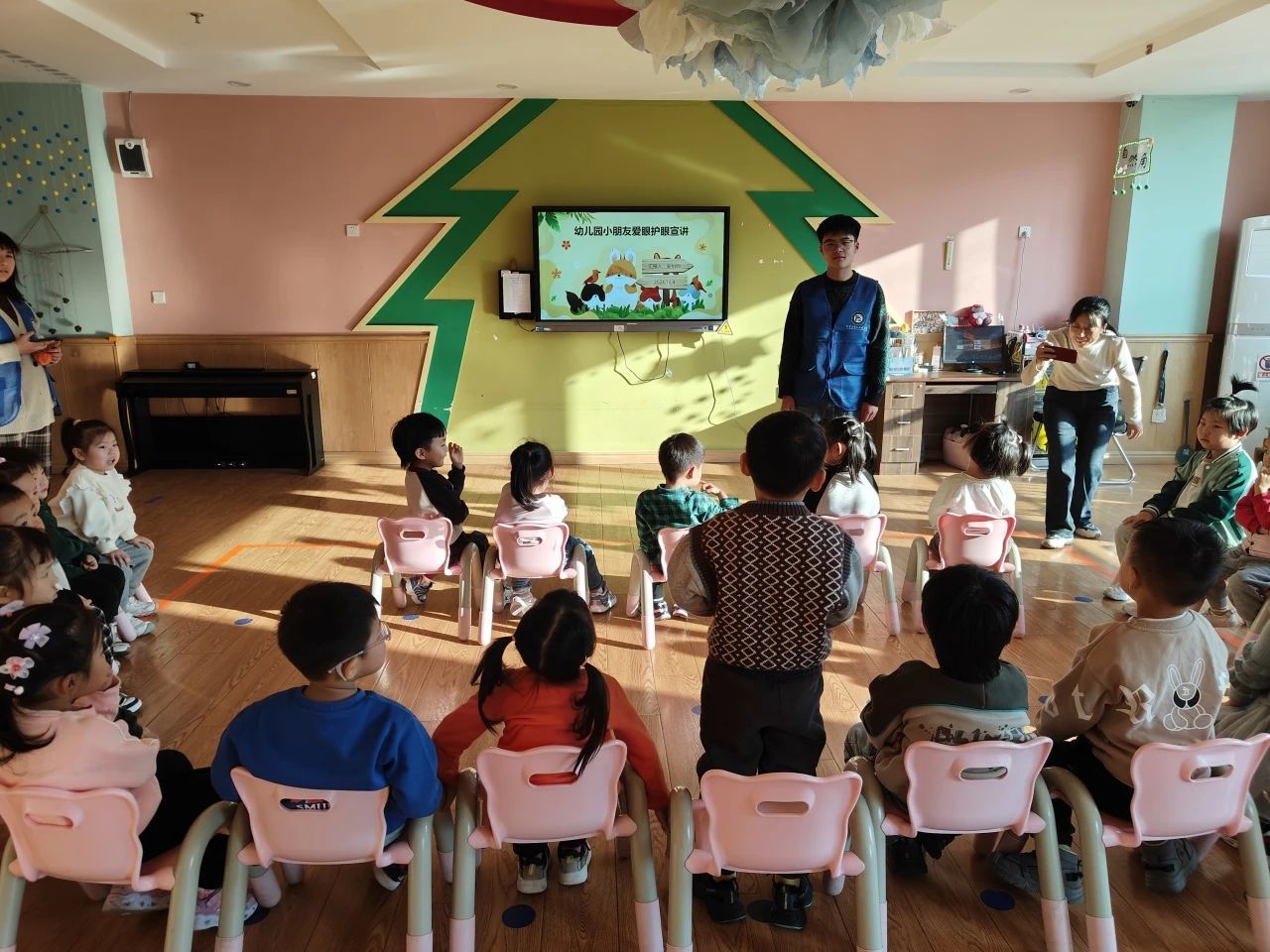 为帮助小朋友们树立护眼意识,让他们养成良好的用眼习惯,2月16日,亚色视频 暖途义行志愿服务队于聊城市东昌府区怡景小学附属幼儿园举办以“科学爱眼,健康成长”为主题的社会实践活动。