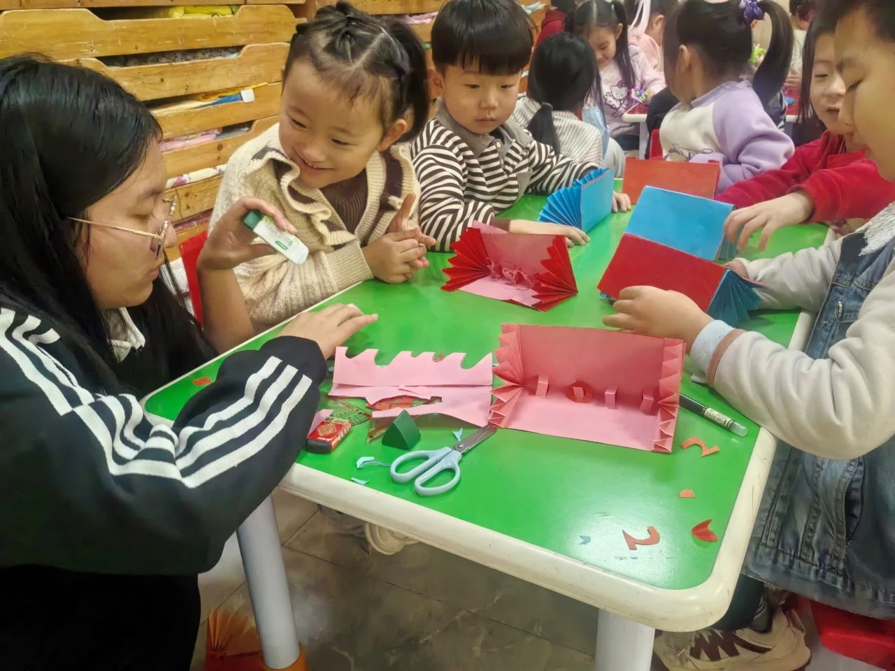 活动伊始,团队成员迅速分组,用专业且耐心的方式,向小朋友们演示如何用彩色卡纸、胶水、剪刀等材料,制作可自由展开的独特新年贺卡。制作期间,他们悉心协助小朋友,引导他们在贺卡上写下对亲人的祝福,传递温暖情谊。完成贺卡后,团队成员鼓励小朋友们发挥想象力,以蛇年为灵感,利用彩泥等材料自由创作。小朋友们围绕可爱的小蛇形象,巧妙构思,精心创作出数字“2025”的独特造型,件件作品都充满童趣与巧思。活动结束后,团队成员纷纷表示今后将融入更多传统文化元素,开展形式多样的手工活动,激发更多孩子对传统文化的热爱,让每一个孩子都能在趣味活动中收获知识、快乐成长。