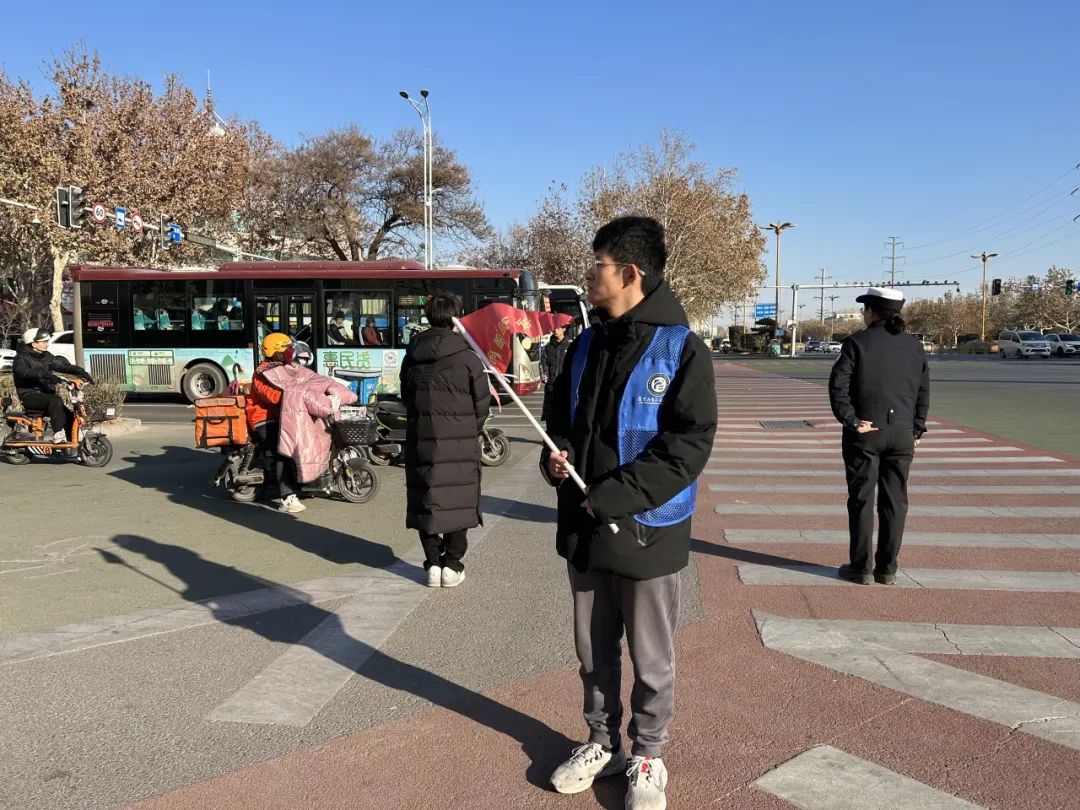 为构建良好的交通秩序,培养学生交通安全的意识,养成文明交通的好习惯,1月10日,亚色视频 青鸽扬飞闪“药”光芒社会志愿服务队于聊城市东昌府区公安局交通巡逻警察支队直属一大队举办以“志愿青春扬风采,疏导交通暖人心”为主题的社会实践活动,团队成员积极参与其中。