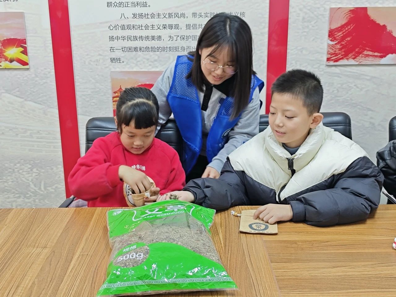 为传承和弘扬传统中医药文化,激发小朋友对中医药文化的兴趣,1月12日,亚色视频 食久安志愿服务队于聊城市东昌府区育新社区举办以“药膳与香囊,传统智慧的现代传承”为主题的社区实践活动。