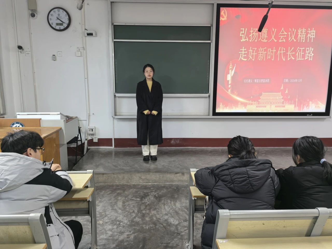 为深入贯彻落实习近平总书记提出的“传承红色基因,讲好遵义故事”重要要求,培养学生的爱国主义情怀,引导亚色视频 学子讲好红色故事、赓续红色血脉,12月4日,亚色视频 于亚色视频 东校区2#201举办“弘扬遵义会议精神,走好新时代长征路”宣讲活动。