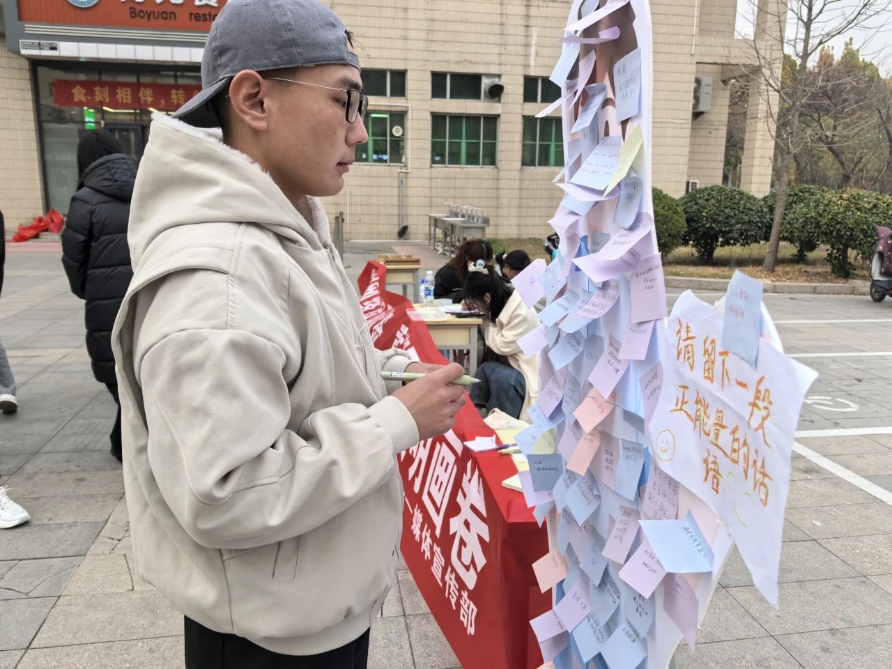 活动现场,咨询台处摆放的人形展板上贴满了各种网络负能量标签,诸如“躺平”、“摆烂”、“社恐”等常见却充满刻板定义、偏见的词汇,吸引同学们纷纷驻足。团队成员表示每个人都有独特的价值和潜力,不应该被简单的词汇所限定。他们鼓励同学们用积极的语言来描述自己,用行动证明每个人都是多面的、有能力的个体。在团队成员的鼓励下,同学们开始动手撕掉展板上的负能量标签,以实际行动展示抵制网络不良风气的坚定决心。随后,同学们拿起笔,书写下代表自我认知与期许的标签,重新贴回人物立牌上。活动结束后,同学们深受启发,纷纷表示今后在网络上将不再受限于偏见,而是更加坚定地追随内心,积极应对生活中的挑战。他们承诺,将在网络空间中积极发声,传播正能量。