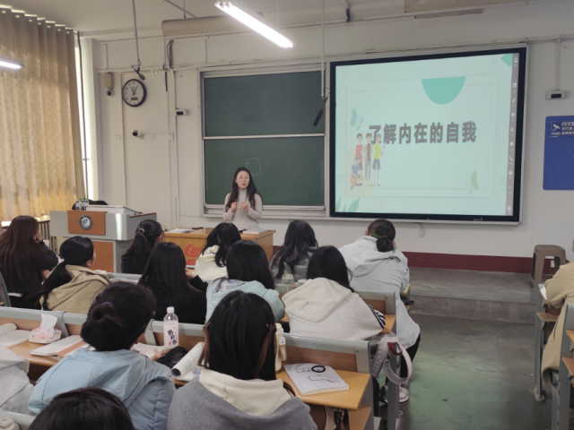 李丹阳围绕自我意识的概述、自我意识发展特点和常见问题、完善自我意识的途径和方法三方面展开讲解,帮助女生了解自我、调控自我、实现自我、超越自我。同时,李丹阳组织女生们进行“我的自画像”小游戏,在轻松愉悦的氛围中激发女生对自我形象认识的思考,呼吁女生们明晰自我意识的作用与重要性,保持健康心态,不自卑不自恋,积极对待生活。李丹阳结合经验以生动形象的语言讲述了“大学生自我意识发展特点和常见问题”,挖掘了女生产生自我意识的障碍与自我意识的问题,解决了女生们关于自我认识的困惑。女生们纷纷表示,李丹阳老师从多角度、全方位倾听了女生的心声,了解了她们的困惑、焦虑和期望,让女生们意识到自我意识的完善是一个长时间的自我认识、自我调整的过程,需要毅力与坚持才能取得成效。