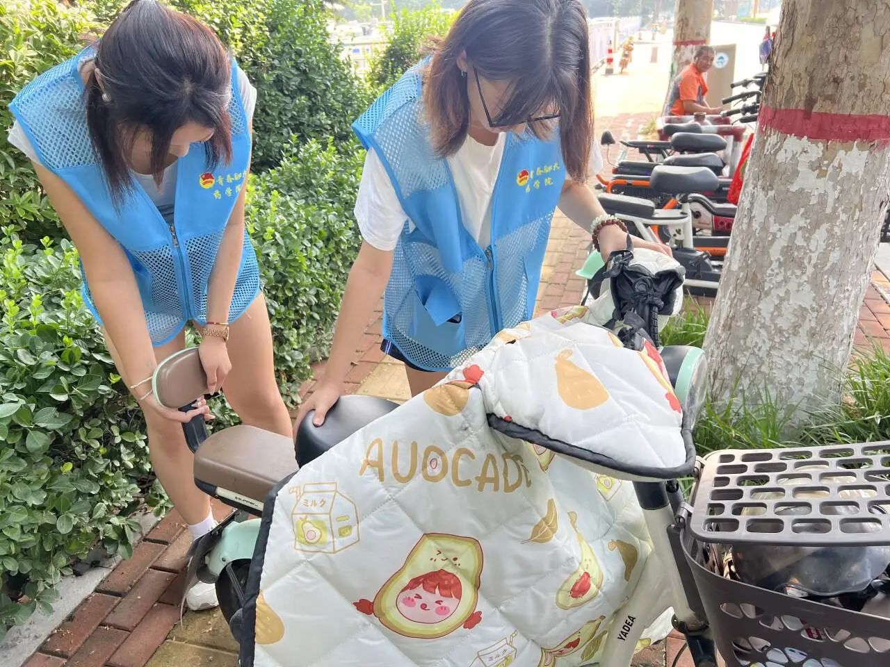活动过程中,负责人对本次活动进行了详细的安排和分工,确保活动的顺利进行。团队成员使用扫帚等工具,清除了盲道及周围的垃圾,团队成员在清扫盲道的同时,通过展板和宣传册向过往行人与社区居民普及无障碍设施的知识,强调其对于残障人士的重要性。同时,团队成员将乱停乱放的共享单车和电动车移至规定停车区域,并在车上留下温馨提示,提醒车主规范停车,不占用盲道,对于占用盲道的行为,团队成员现场进行了友好规劝,确保残障人士拥有一个安全的出行环境,同时倡导社会公众关注身边的残障人群,共同营造良好的关爱残疾人的社会氛围。活动结束后,团队成员深刻体会到维护视障人士权益的重要性和挑战,更加坚定了为构建文明社会贡献力量的决心。