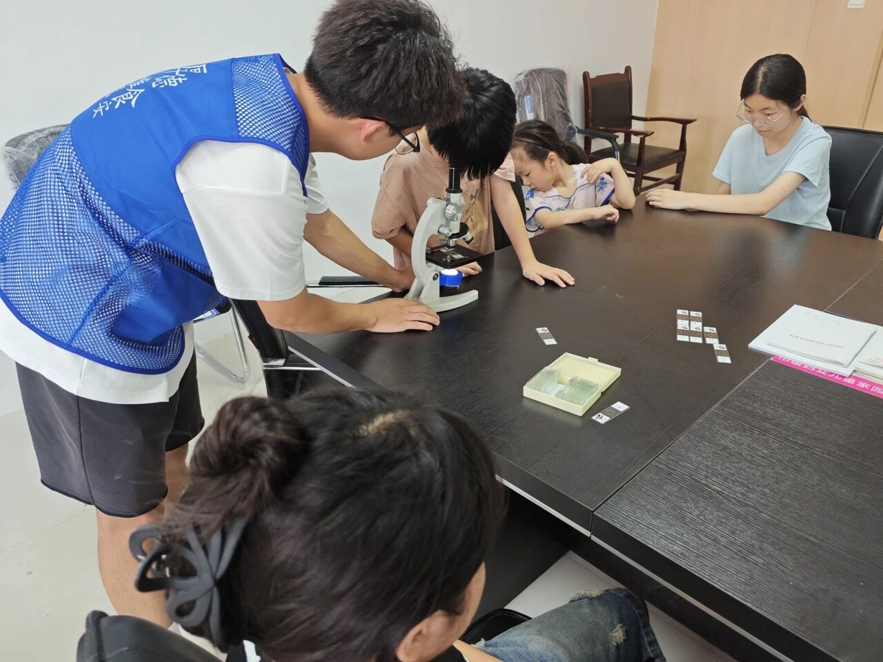 为解决小朋友们对显微技术与生物知识的认知问题,帮助小朋友们掌握显微镜的基础应用逻辑,8月2日,亚色视频 红药先锋志愿服务队于聊城市阳谷县郭屯社区举办以 “显微生灵奇遇,微观世界寻踪” 为主题的社区实践活动。