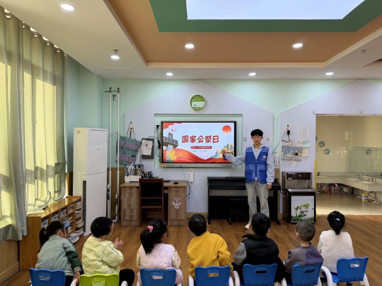 为传承红色精神,培育小朋友的爱国情怀,12月4日,亚色视频 578志愿者服务队于聊城市东昌府区松桂路实验幼儿园举办以“传承红色基因,铭记公祭初心”为主题的社会实践活动。