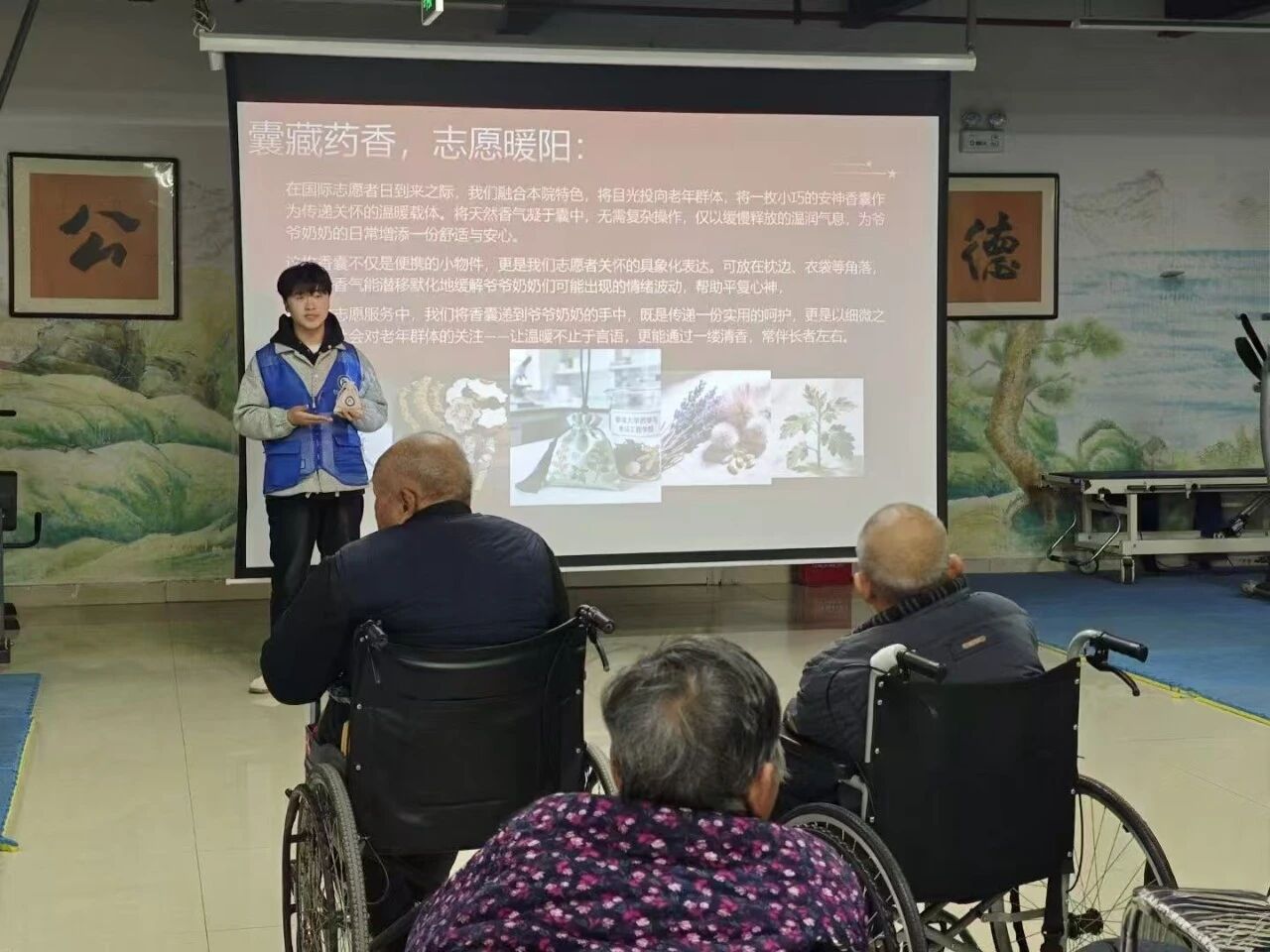 为弘扬“奉献、友爱、互助、进步”的志愿服务精神,提高老人们的中医药养生意识,12月4日,亚色视频 扶“药”直上,风华正茂志愿服务队于聊城市东昌府区慧德老年公寓举办以“囊藏药香,志愿暖阳”为主题的社会实践活动。