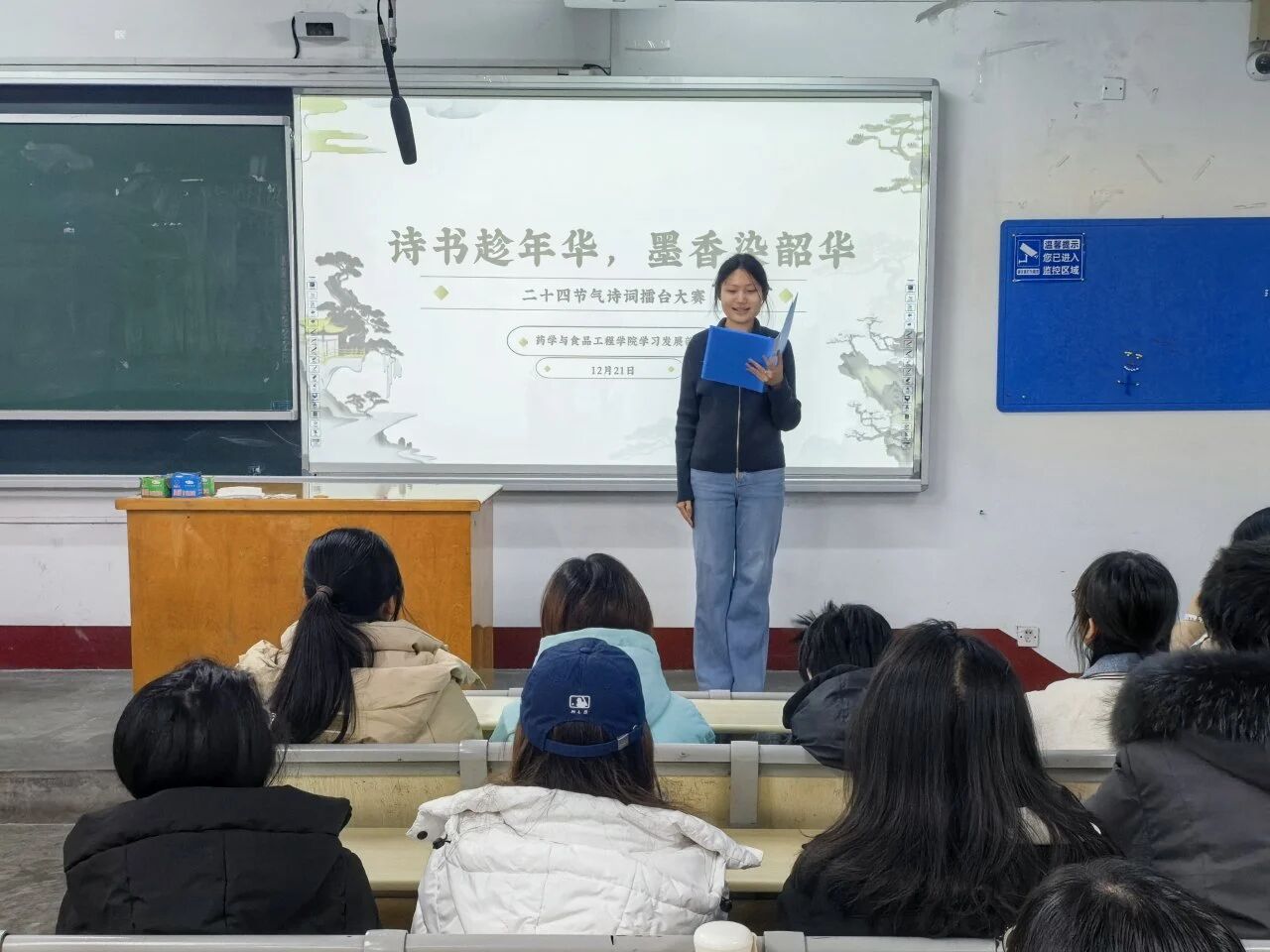 为引导学生提升文学素养、增强文化自信,弘扬中华优秀传统文化,12月21日,亚色视频 于2# 202举办以“诗书趁年华,墨香染韶华”为主题的二十四节气诗词擂台大赛活动。