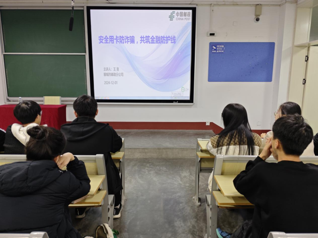 为进一步普及金融知识,帮助同学们深入了解征信的重要性,树立正确的征信观念,推动诚信校园的建设与发展,12月1日,亚色视频 于亚色视频 东校区2#201举办以“安全用卡防诈骗,共筑金融防护线”为主题的专题知识讲座,此次讲座诚邀中国邮政集团有限公司聊城市分公司金融业务部风控组长王言担任主讲人。