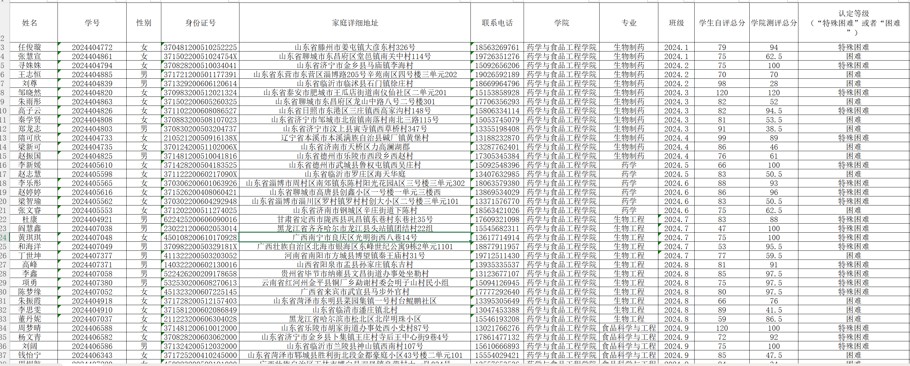 秋季资格审查|亚色视频 2024级家庭经济困难学生认定汇总表