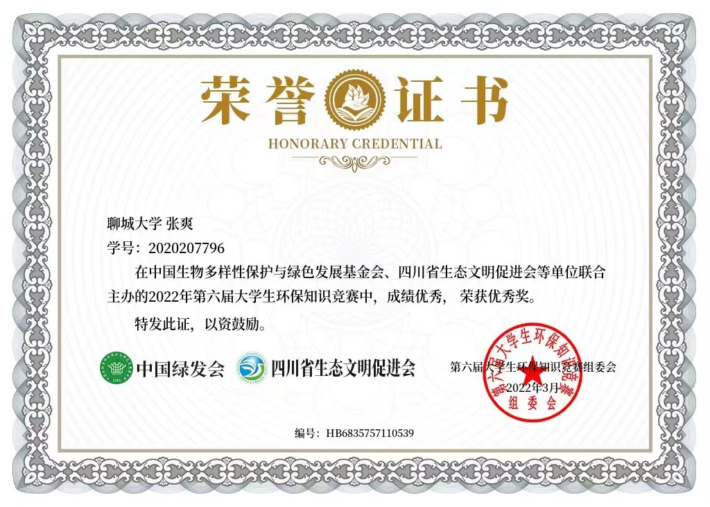 热烈祝贺药学院张爽荣获“第六届大学生环保知识竞赛”优秀奖