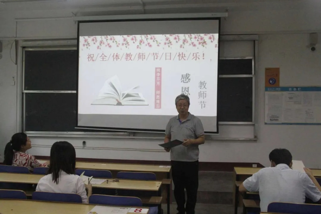 三尺讲台数十载,桃李天下恩不忘。大会开始,柳仁民对到场教师送上教师节的真挚祝福及对教师一年辛勤工作的表扬。随后,学生为表达感激之情,制作视频,由岳琳琳代为播放。视频中,学生以真挚的话语,表达出对老师的感激之情,“老师有很强大人格魅力,不吝啬于传授知识,教授我日常工作经验”,“老师和蔼亲切,时刻关心同学们的身心健康”,“师恩深深,铭记于心”……一句句发自肺腑的言论,如同细腻的春雨,轻轻地浸润着在场教师的心田,教师的欣慰之情溢于言表。学高为师,身正为范。视频播放完毕后,由孙研红发表讲话,诵读有关师德师范的条例清单,一条条的论述,条理分明,教师们也认真聆听学习。教师是学生前进道路上的指路人,一言一行都在影响着学生。教师必须要严于律己,规范自身,以实际行动来教育学生,推动学生进步。