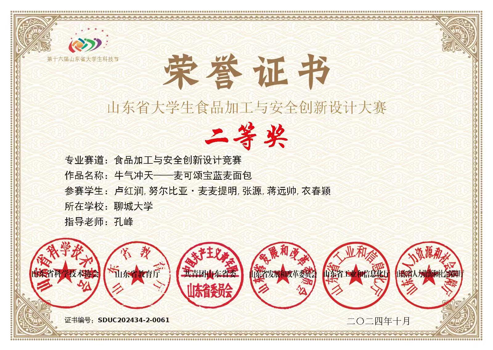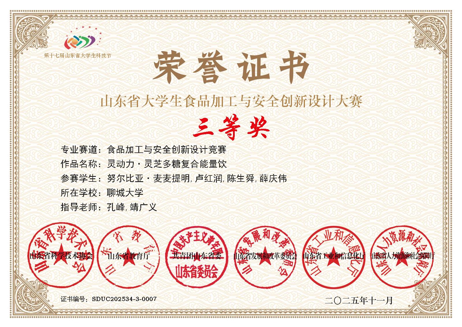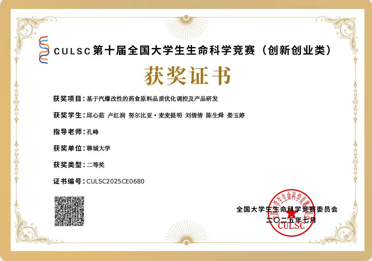 热烈祝贺亚色视频 卢红润荣获全国大学生生命科学竞赛(2025,创新创业类)山东赛区决赛一等奖
