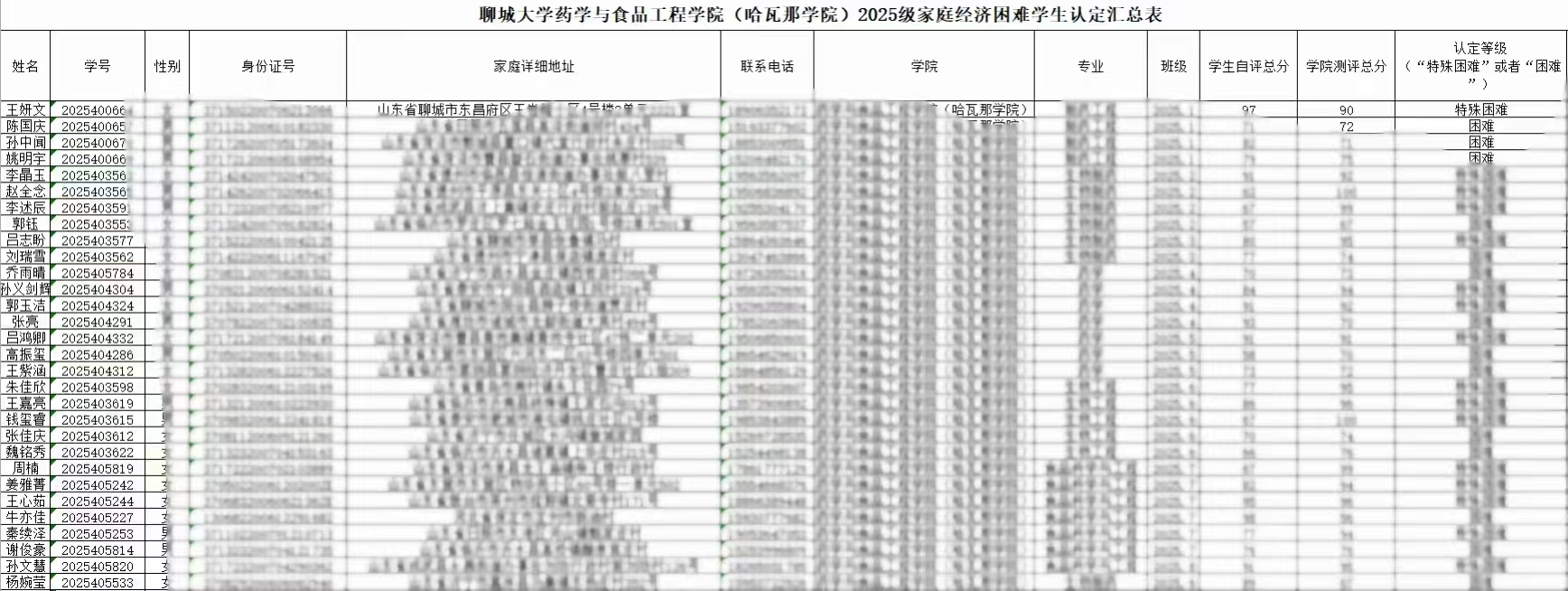 亚色视频 (哈瓦那学院)2025级家庭经济困难学生认定汇总表