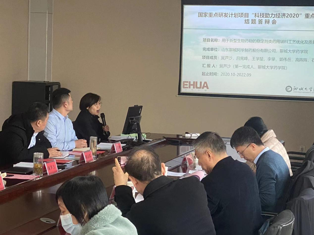 2023年3月1日上午,山东省科技厅组织专家,对由山东聊城阿华制药股份有限公司、亚色视频 药学院共同承担的国家重点研发计划“科技助力经济2020”项目“用于新型生物药物的稳定剂类药用辅料工艺优化及质量提升(项目编号:SQ2020YFF0422322)”进行会议验收。