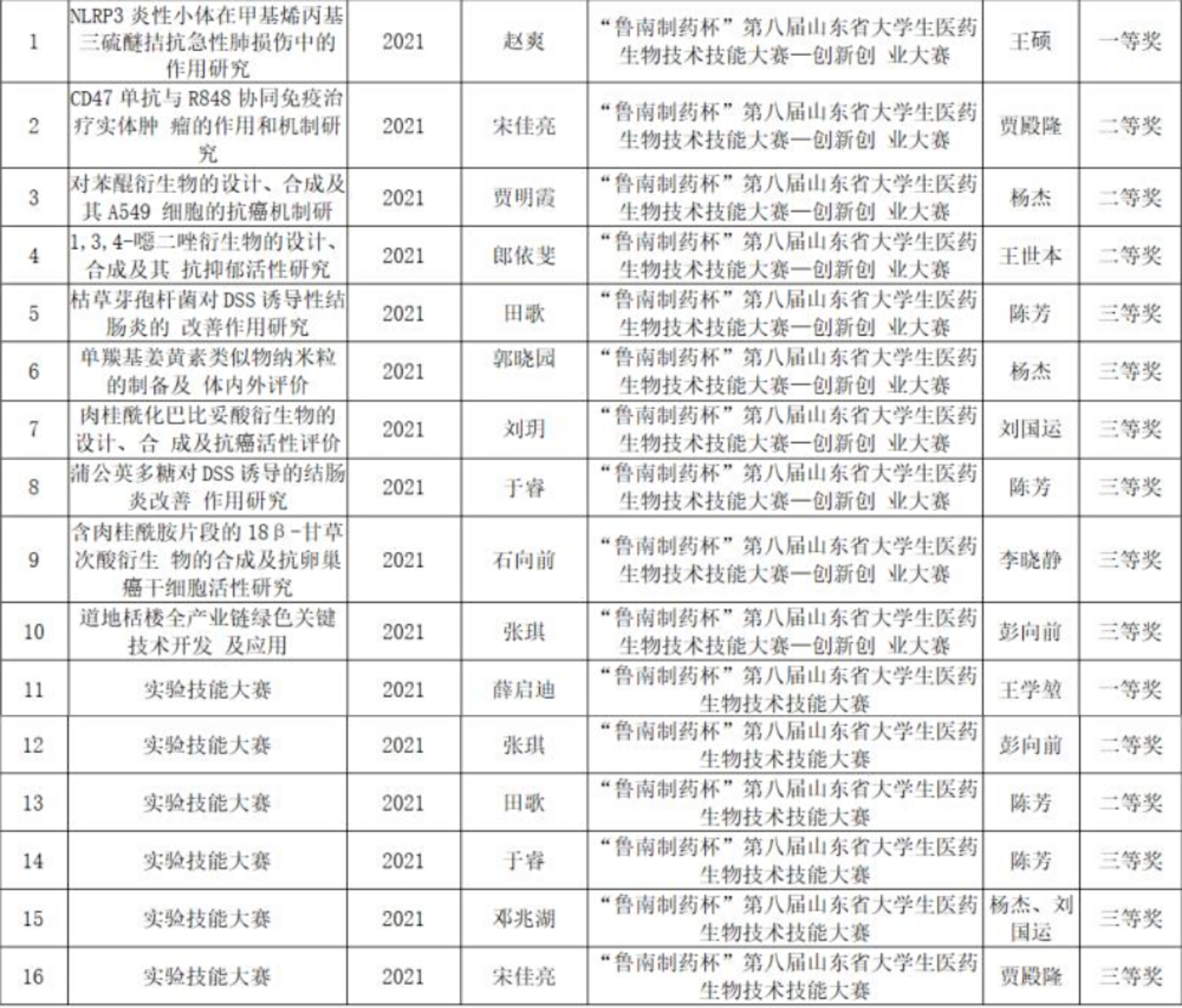 “鲁南制药杯”第八届山东省大学生医药生物技术技能大赛获奖-药学院