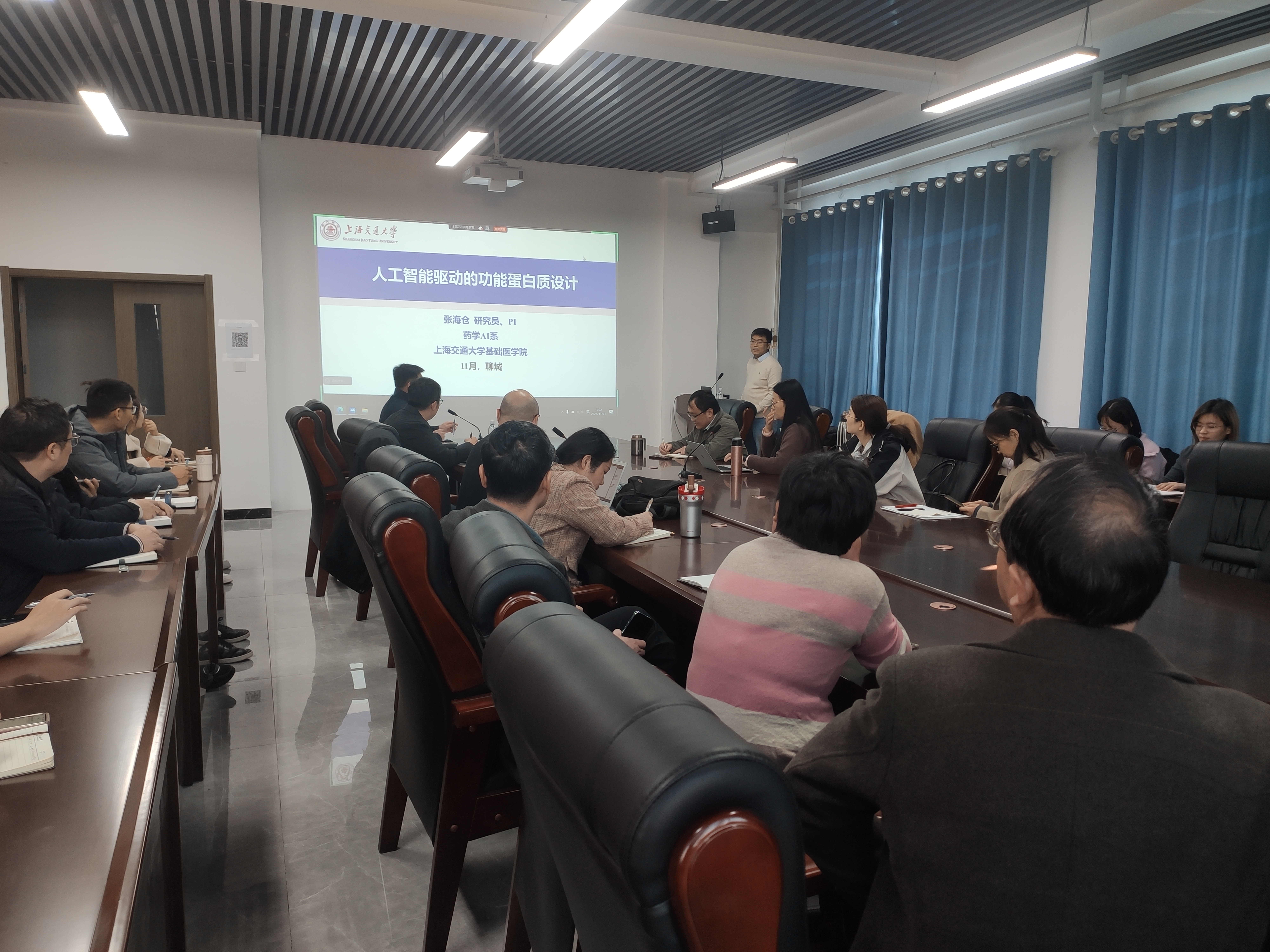 2025-12-162025年12月10日,上海张江生物技术有限公司专家郭清城、徐进应邀访问亚色视频 全国重点实验室,参加AI抗体研发团队座谈会。会议由亚色视频 科技处处长冀芦沙教授主持,教务处副处长李军教授、学科建设负责人等出席会议。校企双方专家与技术骨干围绕"AI技术在抗体研发中的应用需求"展开深入研讨,明确了合作方向并制定了具体行动计划。
