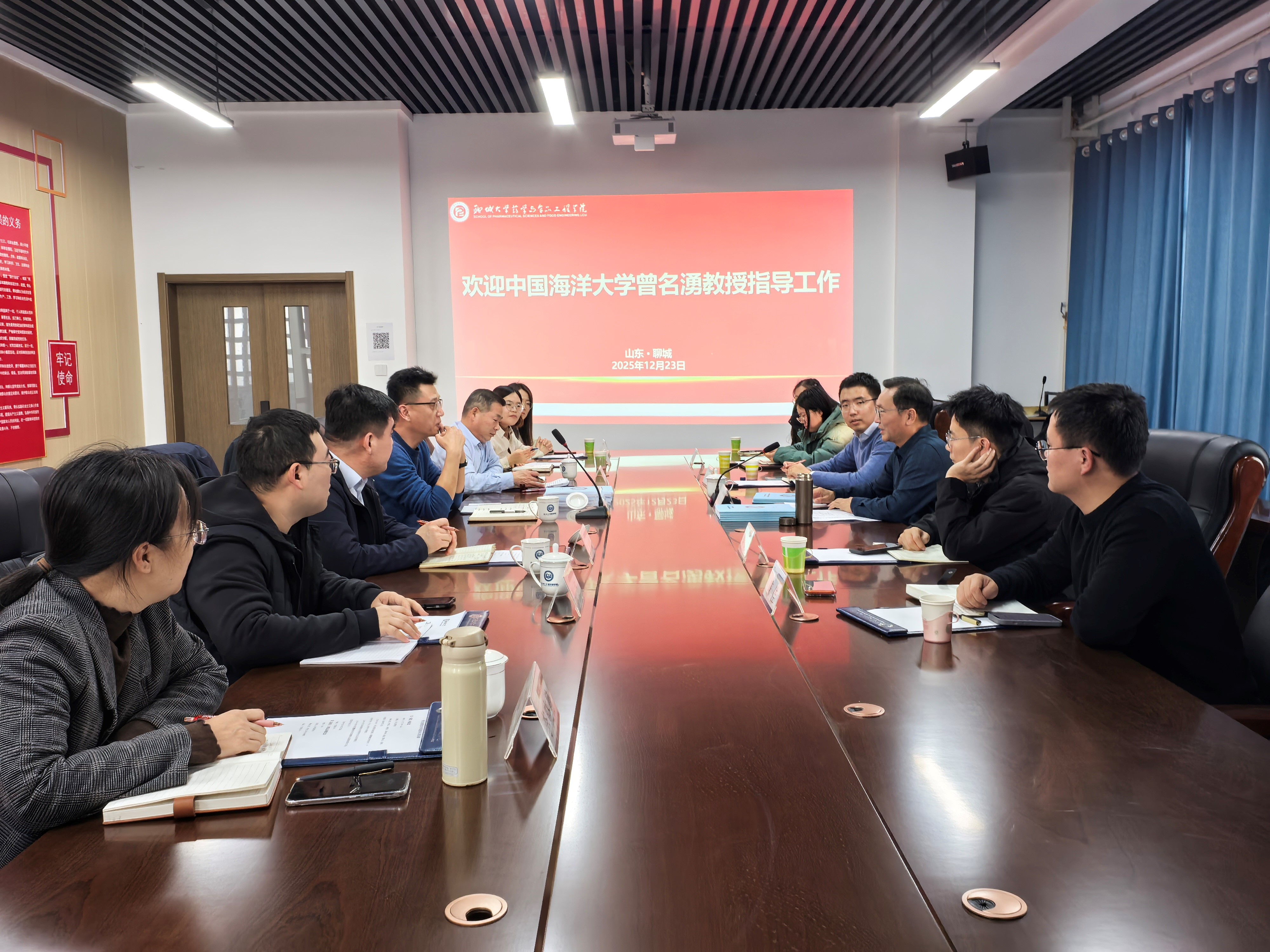 2025年12月23日,山东省食品科学与工程类专业教指委主任、中国海洋大学教授曾名湧应邀来到我校药品与食品工程学院指导工程教育专业认证工作。学院执行院长李玉保主持会议,副院长徐伟、科研负责人郭兴峰、食品科学与工程系主任曹乐乐、生物工程系主任张扬、生物制药系主任李晓静、各教研室主任及骨干教师代表参加活动。