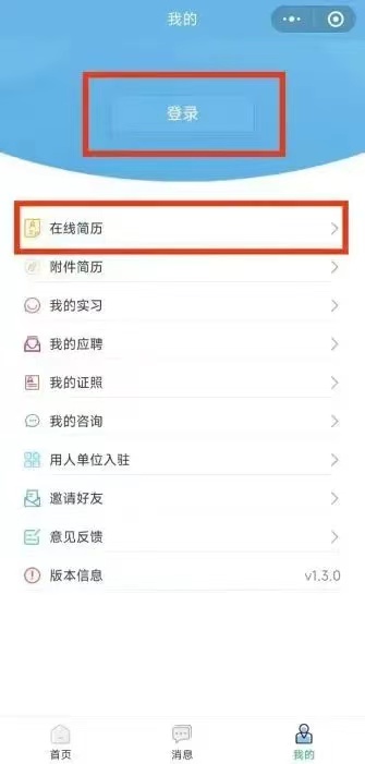3.点击登录,填写相关信息,授权完善在线简历。